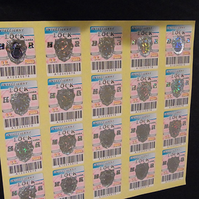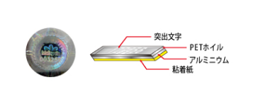 レーザーを用いてラベルの中に数字をエンボスしますが、ラベル表面には傷つきません。連続した番号をふることができ、その数字は透明になります。 この画期的技術によってより一層の偽造防止効果を付加できます。